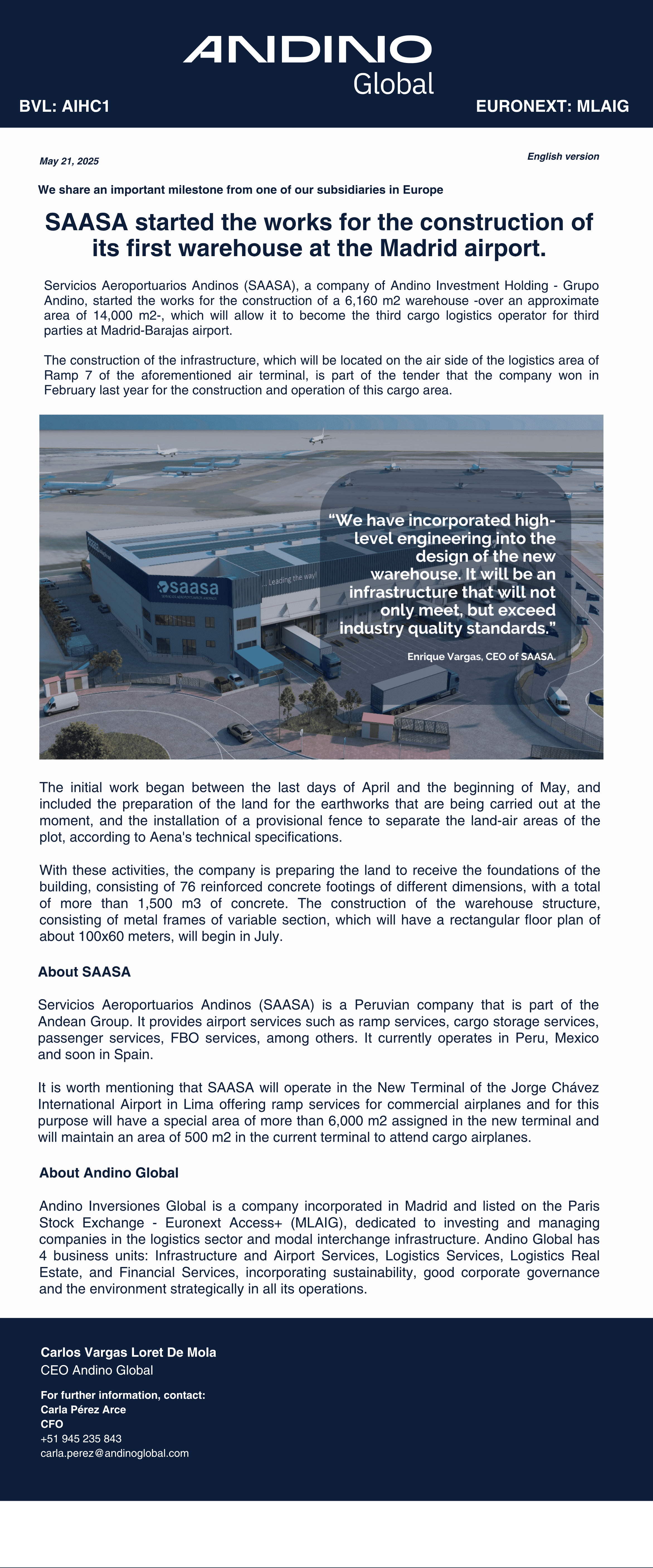 SAASA started the works for the construction of its first warehouse at the Madrid airport.