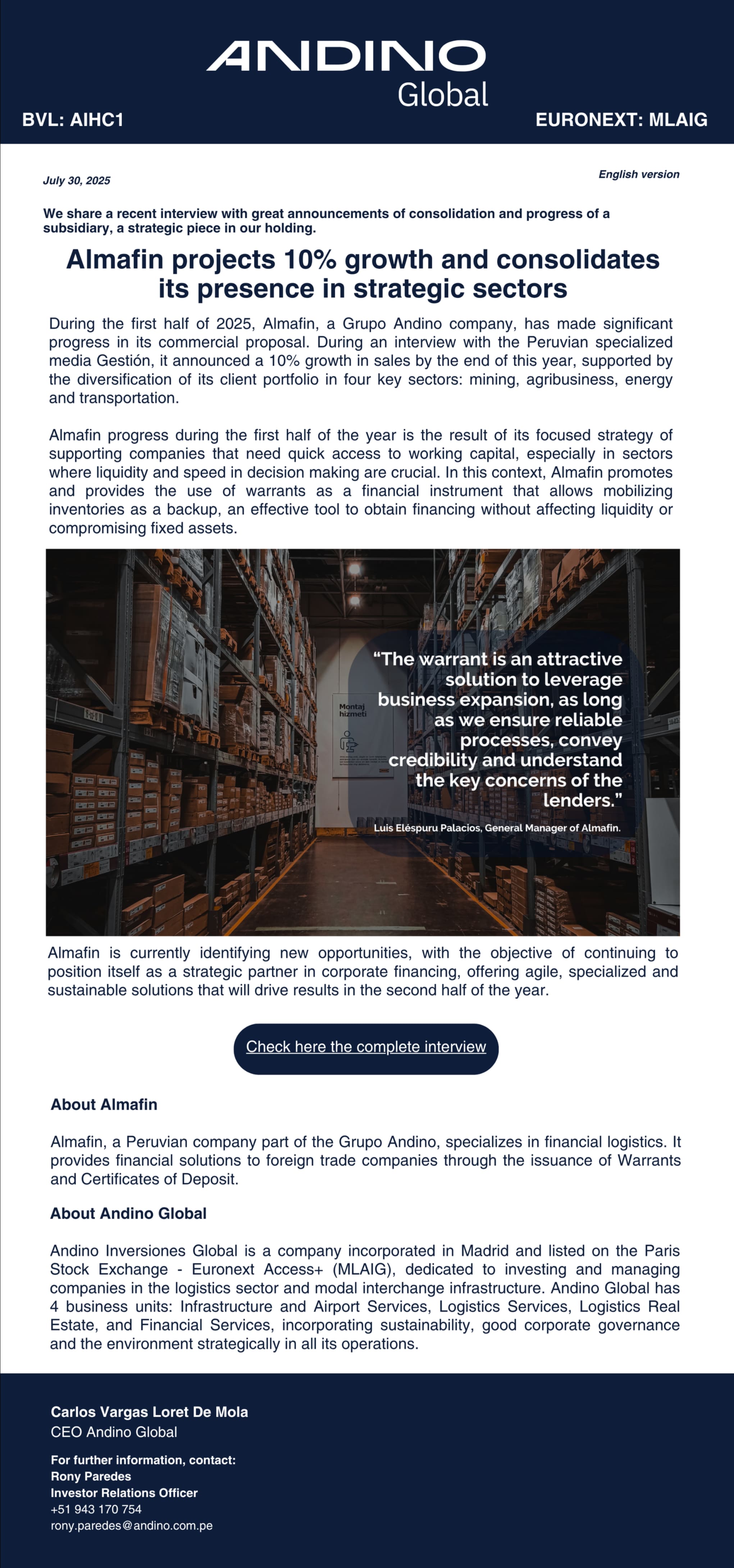Banner of newsletter andinoglobal