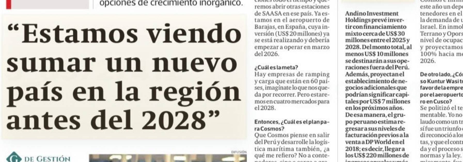 El conglomerado logístico y aeroportuario define sus nuevos pasos en el exterior con su empresa Cosmos y mantiene en la mira opciones de crecimiento inorgánico.
